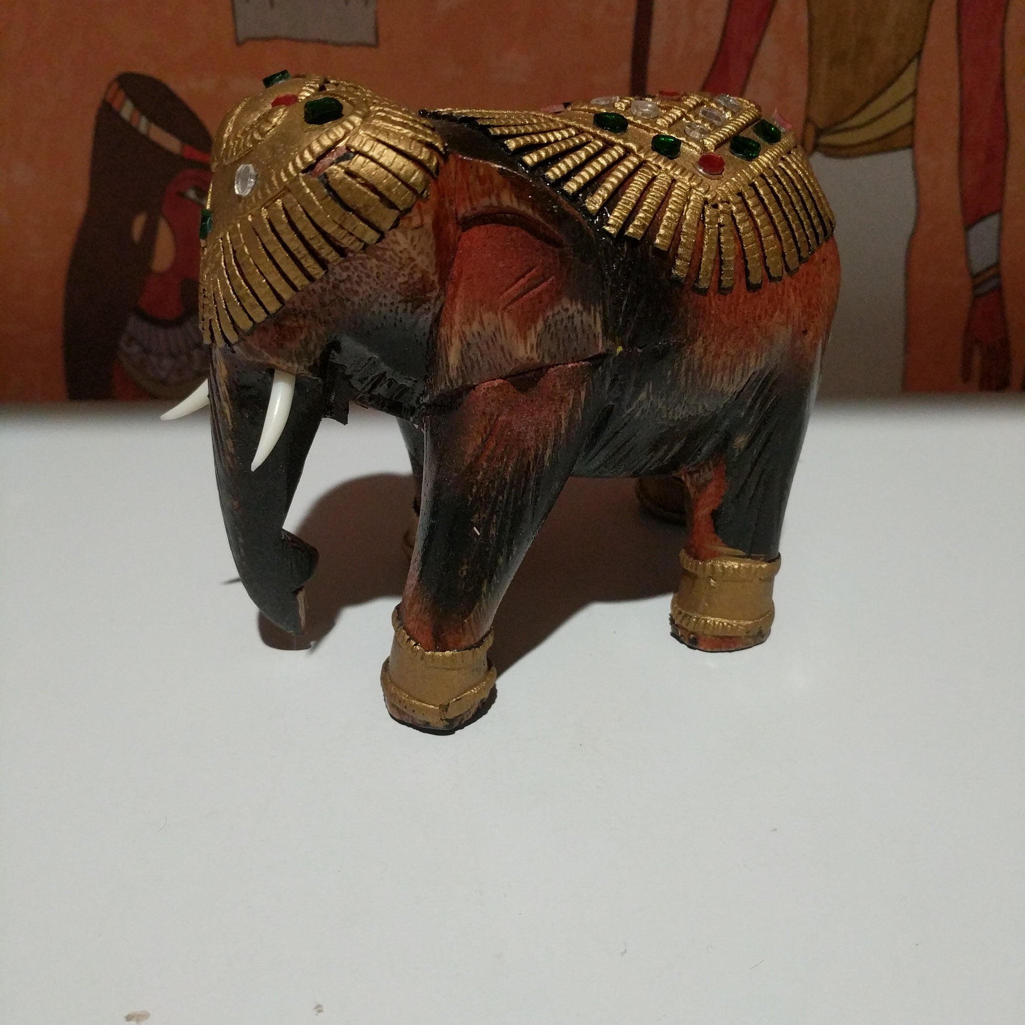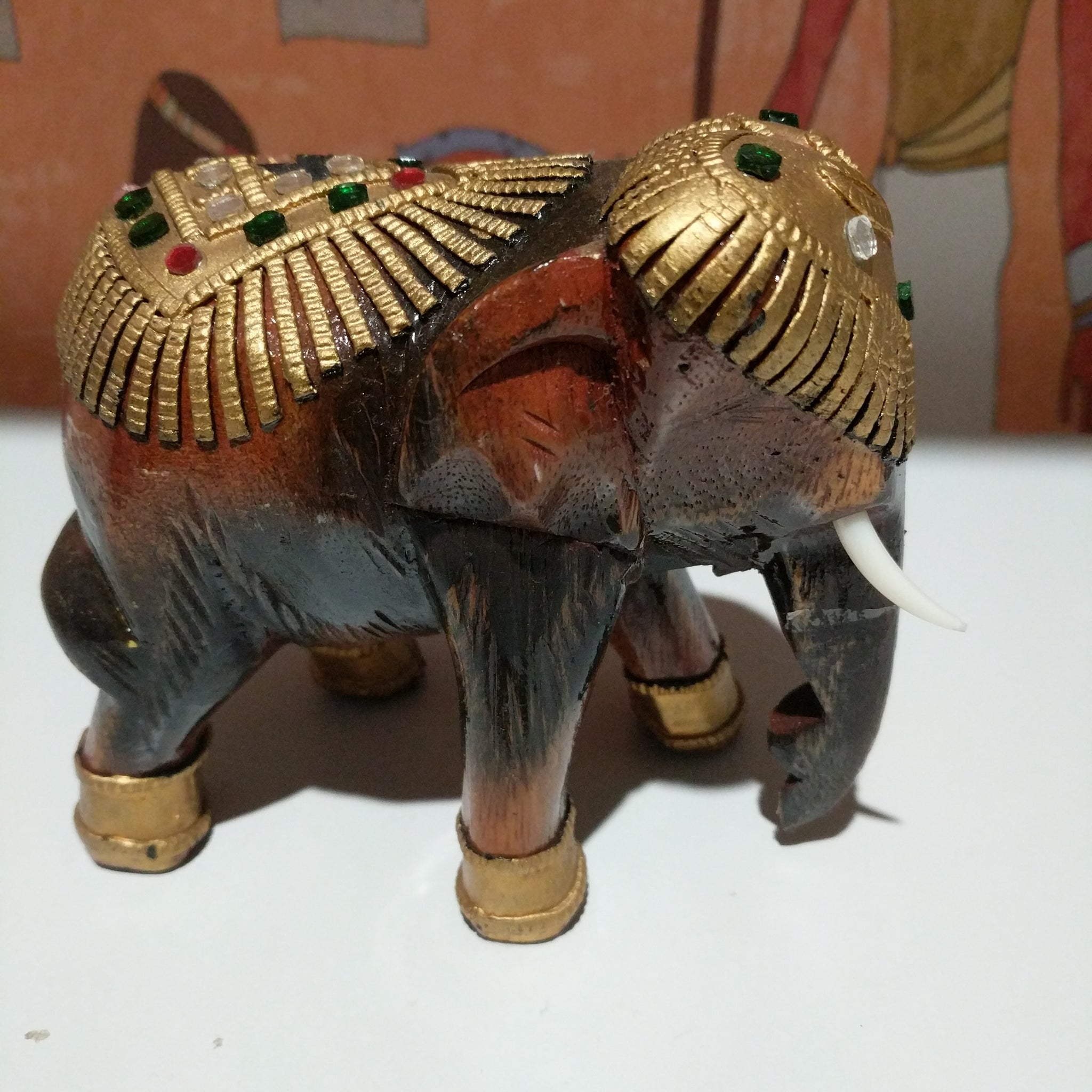 Hand made wooden Elephant 11 mm high 10 mm wide beautifully decorated with jewels they say brings luck we all need that for sure