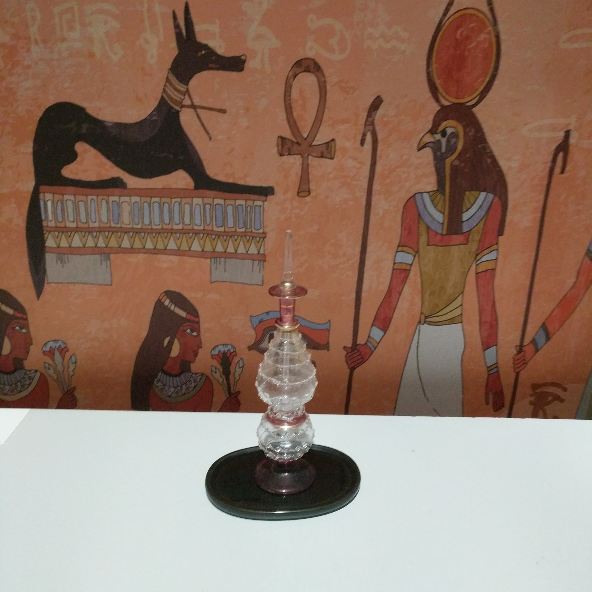 Hand made pyrex glass perfume bottle made in Egypt capacity 70 ml hight 17 mm high 4 mm wide
